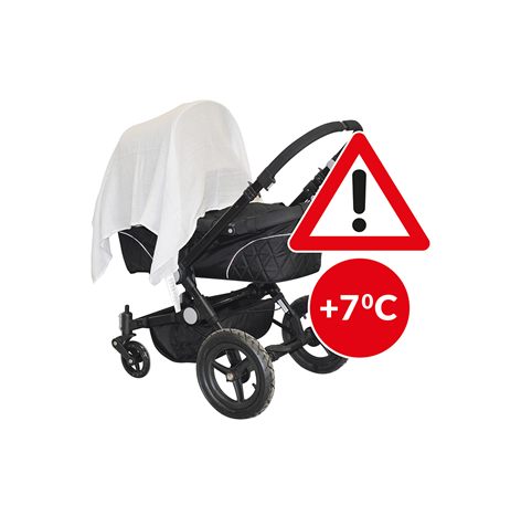 UIt de resultaten van het onderzoek uitgevoerd door TÜV Nederland blijkt dat het gebruik van een hydrofiele doek over de kinderwagen als bescherming tegen de zon kan zorgen voor oververhitting. Een hydrofiele doek heeft een los geweven structuur, deze biedt een goede ventilatie, maar geen bescherming tegen de schadelijke UV stralen. Daarnaast kan door het afdekken de temperatuur 7 graden stijgen in de wagenbak, waardoor er oververhitting ontstaat. Wij raden het gebruik van een hydrofiele doek over de wagen daarom ten zeerste af.